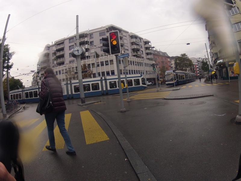 Und doch, war da etwas: Der Radfahrer auf dem Gehsteig, der dann doch plötzlich auf die Fahrbahn runterhüpft. Natürlich noch gerade knapp vor mich hin. Oder der Sattelschlepper mit dem Tiefganganhänger, parkiert auf dem Radstreifen: der Radfahrer vor mir entscheidet sich doch im letzten Moment links, und damit vor mir, an dem Fahrzeug vorbei zu fahren, obwohl er lange nach rechts tendierte. Oder der komplizierte Kreisel mit der doppelten Spur, dem Tram in der Mitte und den umfahrenden Buslinien, wurde heute zusätzlich noch von einem Strassenkehr-Fahrzeug und einem Fahrzeug der Kehrichtabfuhr belagert. Dazwischen noch ein paar hastende Fussgänger.
