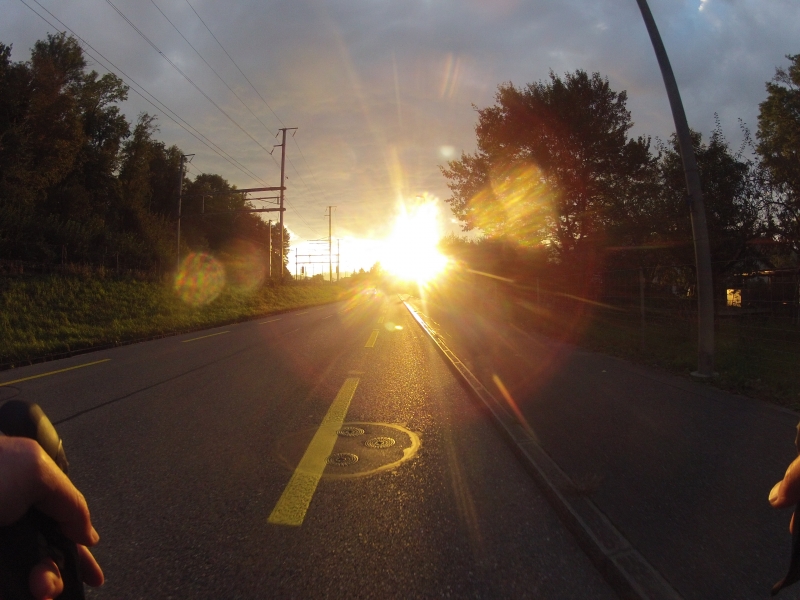 Erst auf den letzten Kilometern, und erst noch für nur einen kurzen Augenblick, schaute die Sonne zwischen den Wolkenbänken einen Moment lang herunter.