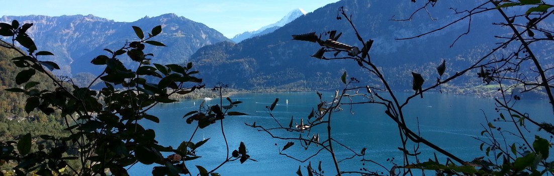In Thun fährt uns das Schiff bei schönstem Sonnenschein, aber vorerst noch bei eisiger Kälte den Aarekanal hinauf auf denThunersee. Ich bevorzuge die rechte Seite des Schiffes, mit grandioser Aussicht auf die Berge, doch die Sonne steht meist auf der linken Seite des Schiffes. Zum Aufwärmen wechseln wir nun zwischen den beiden Seiten ab. Links die Sonne und die Aussicht auf den Beatenberg, rechts die Kälte und Sicht auf die Alpen.
