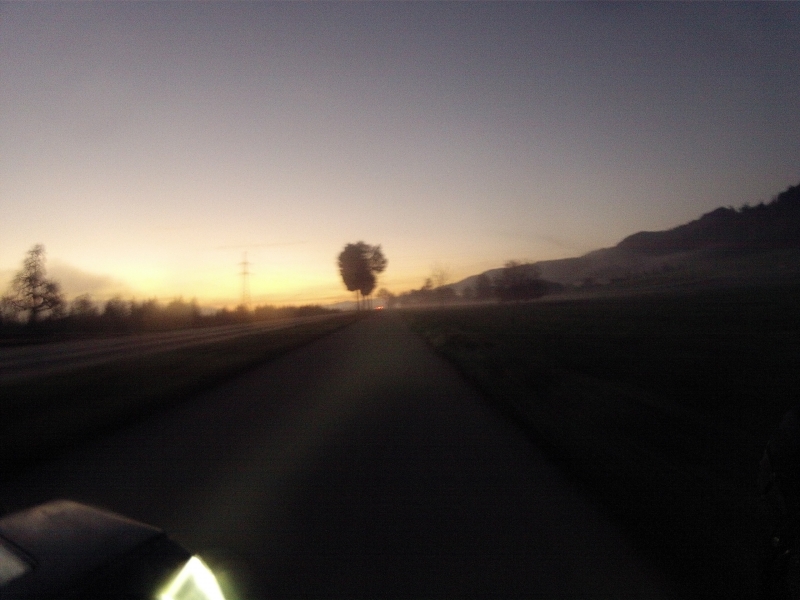 Die heutige Fahrt zur Arbeit war eine der schöneren. Ab Baden war der Nebel plötzlich weg. Auf dem Feld zwischen Neuenhof und Killwangen noch ein paar letzte Nebelschwaden, ab dann konnte man dem Morgenrot zuschauen, wie es den Horizont immer mehr einfärbte. Für einen Blick auf die aufgehende Sonne reichte es aber nicht mehr. Der Winter steht schon zu nahe vor der Türe.