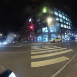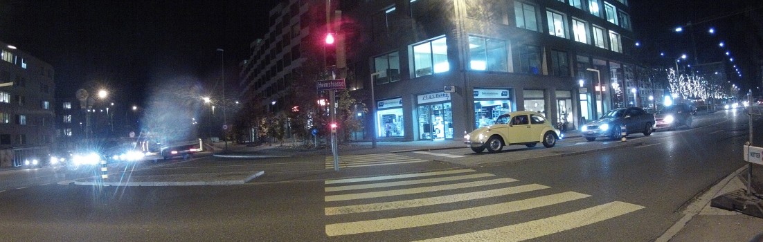Sogar meine Kamera am Lenker hat heute einen ersten Schmuck erwischt. Ganz rechts im Hintergrund wurden ein paar Bäume mit Lichtern eingedeckt.