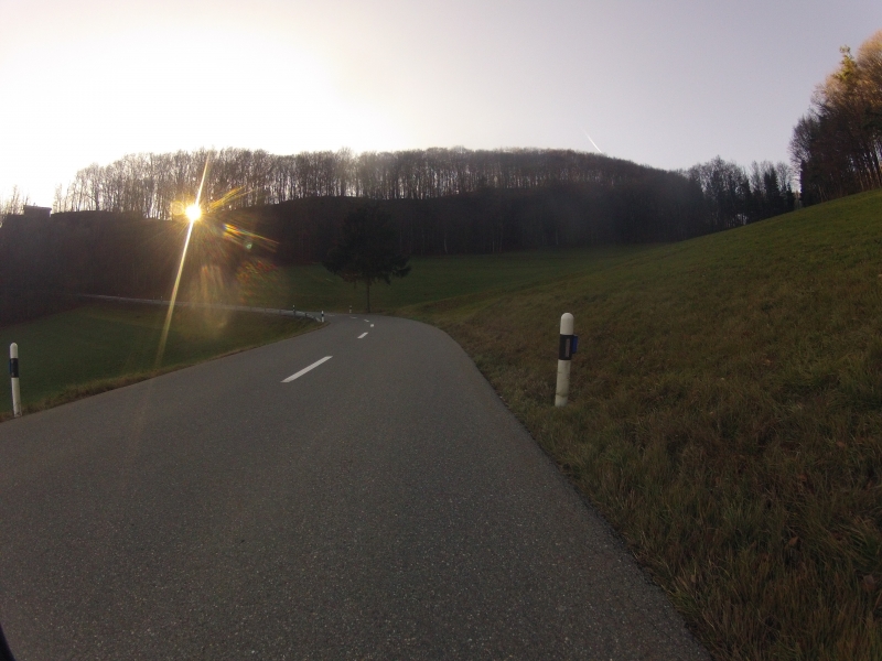 Eigentlich war ja die ursprüngliche Absicht eine andere. Nach getaner Samstagsarbeit wollte ich noch meine tägliche Portion Kilometer unter die Räder legen. Es war mittlerweile schon wieder dunkel geworden. Die Temperaturen für den Dezember viel zu warm, klarer Himmel, trockene Strassen. Gute Voraussetzungen für eine Fahrt durch die Nacht. Ich suchte mir Strecken mit Radwegen, etwas abgelegen durften sie auch sein.