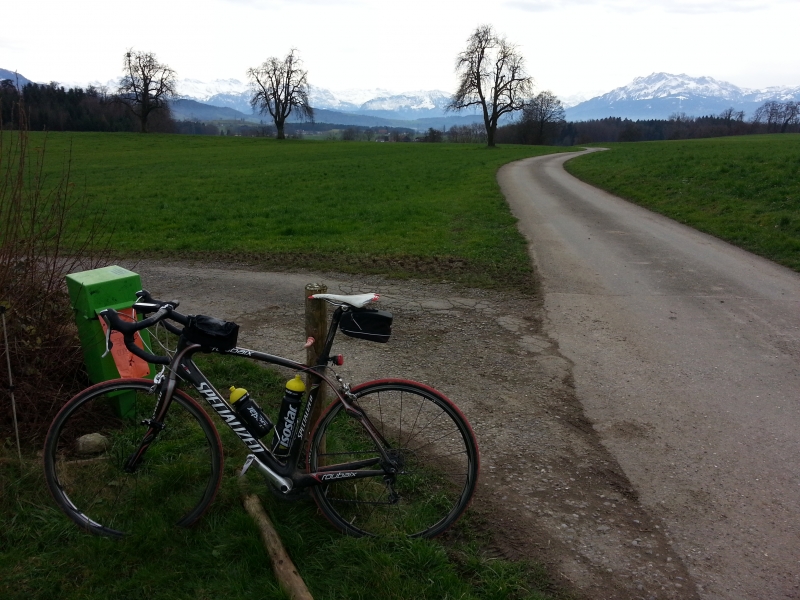 Ich entschied mich für das Reusstal. Mülligen, Mellingen, Bremgarten, die Sonne schien immer noch. Bald nach Bremgarten gelangt man in das breite und offene Reusstal. Der Alpenkamm schien wieder einmal direkt hinter den Hügeln des Mittellandes zu stehen. Fast während der ganzen Fahrt nach Sins hatte ich den schönsten Blick auf die verschneiten Alpen. Die Schneedecke reicht offensichtlich bis an die Waldgrenze hinunter.