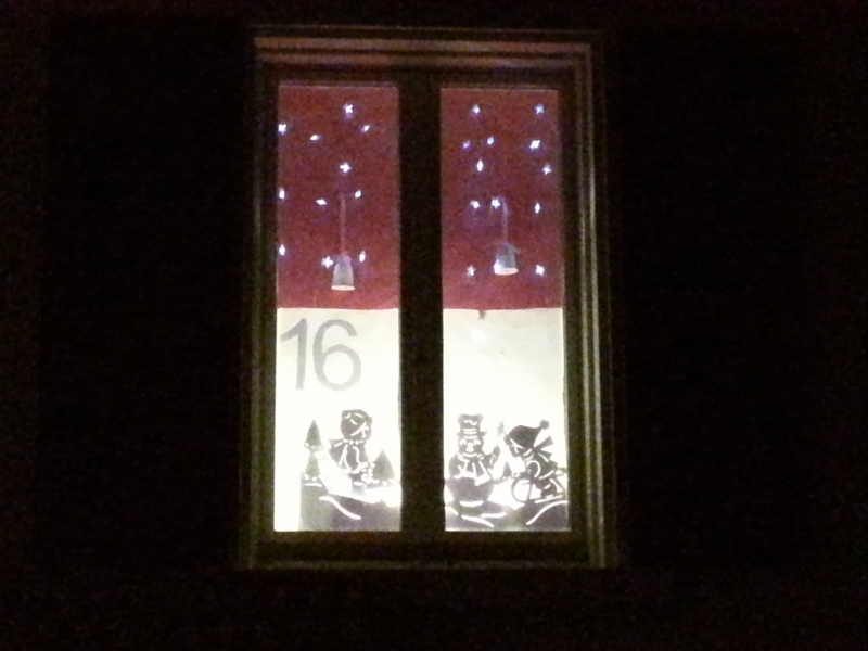 Das wird dann ähnlich einem Adventstürchen am entsprechenden Tag und unter Beisein der Nachbarschaft geöffnet oder enthüllt. Bei uns an der Strasse gibt es gleich zwei solcher Fenster.