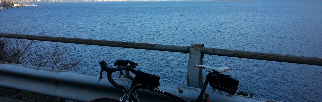 Cannobio – Baustelle hin und zurück sind ziemlich genau 10 KM. Drei mal hin und her ergäbe die fehlende Kilometerzahl. Kühler Wind, aber immerhin an der Sonne. Ruhige Strasse, kein Verkehr. Die Kilometerfresserei beginnt. Da und dort ein Foto. Statt der Pizza in Verbania gibt es Bananen und Schokolade aus dem Rucksack.