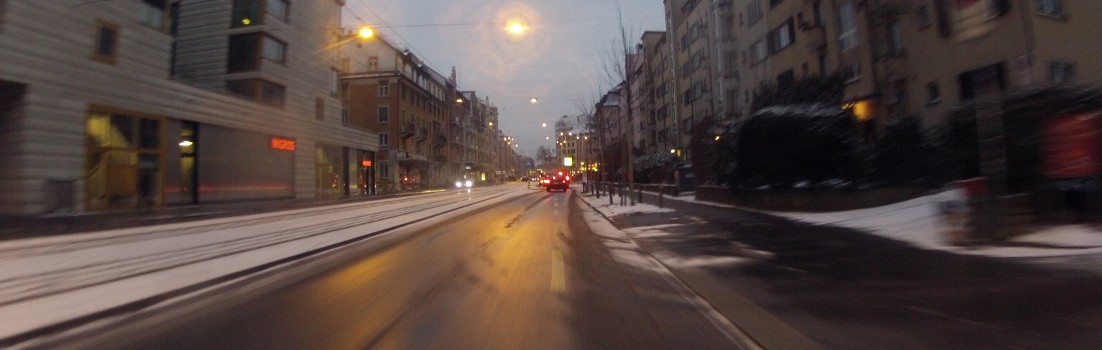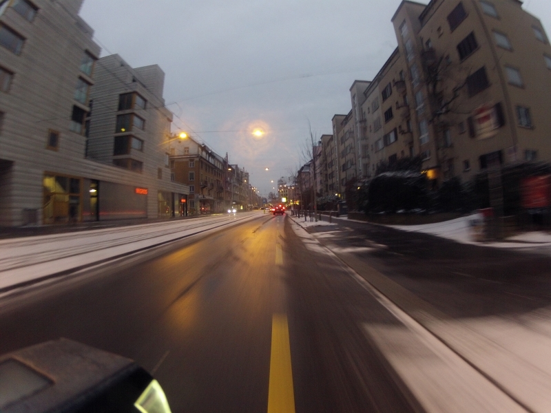 Den Salzstreuern im Raum Zürich, schien die Situation rund um die Eisbildung etwas zu heikel zu sein. Das viele gestreute Salz brachte den Schnee zum Schmelzen und verhalf mir so zu einer glänzenden Foto, dem heutigen Titelbild.