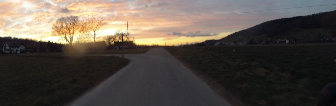 Während der abendlichen Heimfahrt traf es sich heute so, dass ich während der ganzen etwa neun Kilometer durch das Wehntal hinunter, dem Abendrot zuschauen konnte. Im Furttal war die Sonne noch sichtbar, zwischen Horizont und Wolkendecke. Im Wehntal glühten nur noch die Wolken. Langsam wechselten die Farben von Gelb, über Rot bis Violett bevor das Leuchten ganz erlosch und die Dunkelheit der Nacht über das Land zog.