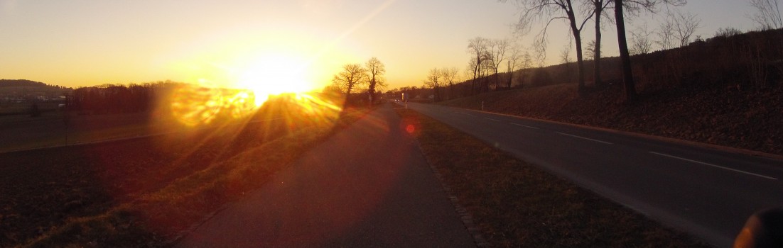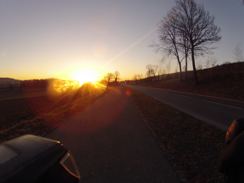 Aber das zählt alles nichts, im Vergleich zu einer Viertelstunde Fahrt, fast ausschliesslich auf Sonnenstrahlen in einen neuen Tag hinein.