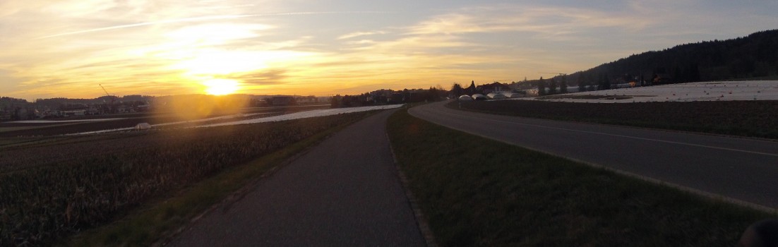 Unterwegs traf mich noch der “Strava”-Kollege, bekannt von den sporadisch gemeinsamen morgendlichen Fahrten auf dem Arbeitsweg. Auch er heute auf einem verlängerten Heimweg. Die Bise schob uns das Tal hinunter. Doch bei all den Kurven, dem ganzen rauf und runter, bekamen wir sie gelegentlich auch im Gesicht zu spüren.