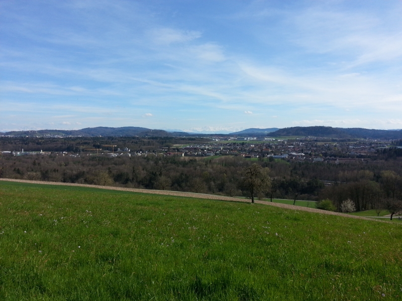 Nach diesem ersten steilen Anstieg ging es ziemlich wellig nach Lostorf, später, Erlinsbach nach Aarau. Ich wollte links der Aare bleiben, nahm damit noch ein paar weitere Höhenmeter in Kauf und kam so zu einem letzten Blick an die Alpenkette.