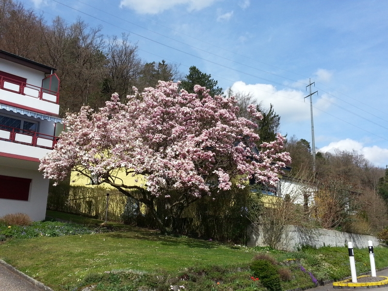 Nach Olten lernte ich eine für mich neue Strecke kennen. Es ging steil, sehr steil den Hang hinauf. Doch die Mühe lohnte sich, stand hier doch ein wunderbarer und grosser Magnolienbaum in einem Garten.