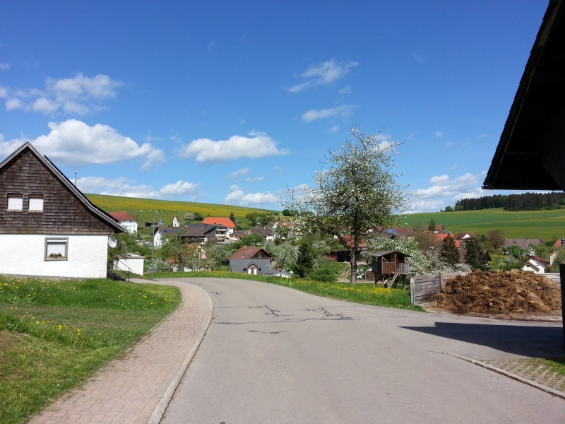 Für den Heimweg hatte ich mir eine Strecke über Bonndorf ausgelesen. Auch da hatte ich wieder ziemlich Glück mit den Strassen. Manchmal holperte es zwar auf den schmalen Strässchen. Um Bonndorf herum fuhr ich auf der B315. Oftmals führte diese Strasse über Kreten, mit schönen weiten Ausblicken, auch schon hinüber in die Schweiz. Man war aber nie wirklich sicher, ob sie vielleicht bereits hinter der nächsten Kurve wieder in ein Tal hinunter führt. Ein stetiges auf und ab, bis zur Abzweigung ins Steina-Tal.
