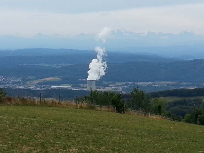 Vielleicht hatten wir ja eine Föhnlage, nebst der Bise. Denn jedenfalls konnte man einigermassen gut den Alpenkamm in der Ferne entdecken. Verwunderlich nur, dass die Dampffahne des AKW von Gösgen im Vordergrund doch einigermassen senkrecht über dem Kühlturm steht. Wehte die Bise nur in der Höhe? Oder hat sie mittlerweile aufgehört?