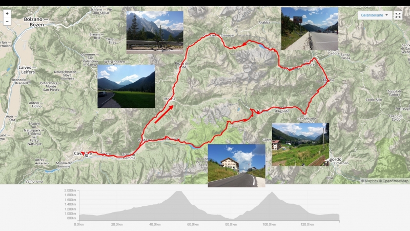 Eigentlich hätte ich ganz einfach auf den Fedaia rauffahren können, wieder umkehren und ins Hotel zurückfahren. Gut 100KM, etwa 1500 HM. Das wärs dann schon gewesen. Das war mir aber zuwenig. Der Umweg über den Passo Valles, diesmal gefahren von der hinteren Seite, ergab eine schöne Runde. Es hat sich auch landschaftlich auf jeden Fall gelohnt.