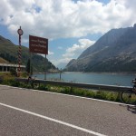 Auf der Passhöhe des Fedaia, gibt es einen Stausee. An beiden Enden ist er durch eine Staumauer gestaut. Ansonsten hat die Passhöhe nicht viel zu bieten. Eine Kerbe in den Felsen.