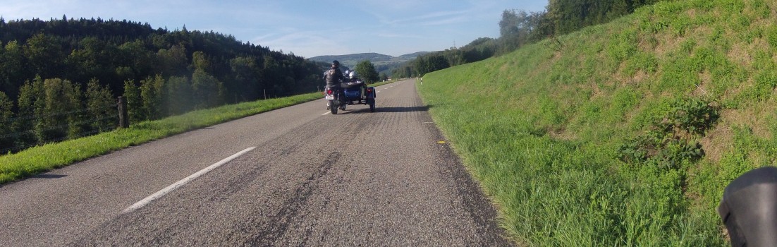 Nach einer kurzen Schussfahrt hinunter, beginnt die Strasse schon bald wieder zu steigen. Hinauf zum oberen Ende des Bachsertales. Hat man mal die Höher erreicht, wird es gemütlich. Langgezogene Kurven und flache Gegensteigungen bis hinunter, kurz vor Kaiserstuhl, an den Rhein.