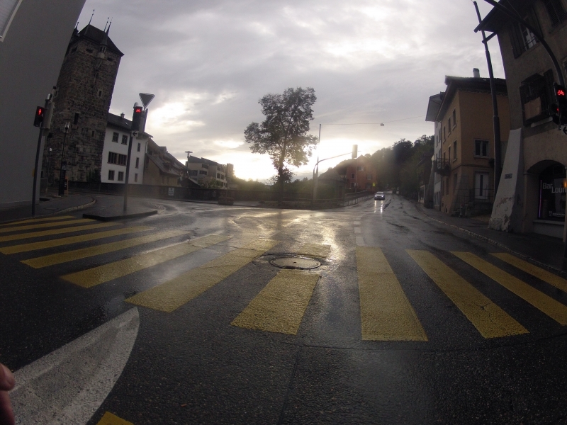 Dank der Föhnsituation war es heute Morgen recht warm. Wärmer jedenfalls als in der letzten Woche im Engadin. Das Niederschlagsradar liess kaum Hoffnung für eine trockene Fahrt übrig. Und dennoch: ich traute dem Blick an den dunklen Himmel nicht recht. Es kam mir vor, wie die Ruhe vor dem Sturm. Auch auf dem Weg, überall dunkle Wolken, nur am Horizont, vielleicht über dem Flugplatz, ein feiner, heller Streifen. Die Strassen waren zwar nass, doch vom Himmel blieb es tatsächlich bis auf ein paar wenige Tropfen trocken.