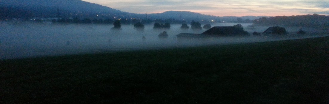 Der Tag begann wie üblich mit einer Fahrt durch das Furttal. Heute boten die Witterungsverhältnisse wieder das ganz besondere Spektakel mit dem Bodennebel in den tieferen Lagen. Nur im Vergleich zu sonst, war er viel dicker und undurchsichtiger. Er lag in der Ebene, fast wie ein See. Nur ein paar Bäume und das Bauernhaus schauten oben heraus.