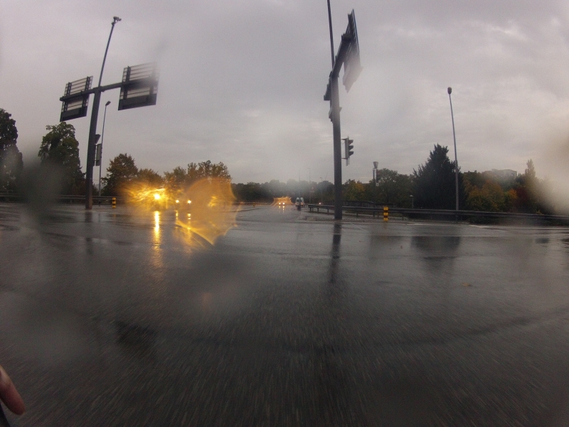 Wenn ich mich beeilen würde, könnte es noch reichen, vor dem angezeigten Regenschauer trocken an mein Ziel zu gelangen. Sowohl am Morgen beim Hinweg, wie auch am Abend auf dem Rückweg, wieder nach Hause. Bei beiden Wegen hatte ich Pech.