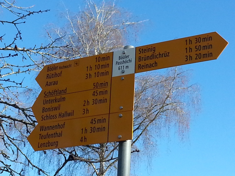Nach Aarau dann südwärts ins Suhrental bis nach Schöftland. Da bog ich links ab, hinauf auf den Böölerpass. Mit 611 Meter über Meer nichts besonders gewaltiges. Er hat aber immerhin auf beiden Seiten zwei Spitzkehren. Die Anzeige für das Gefälle auf der Seite von Schöftland pendelt um 8% herum.
