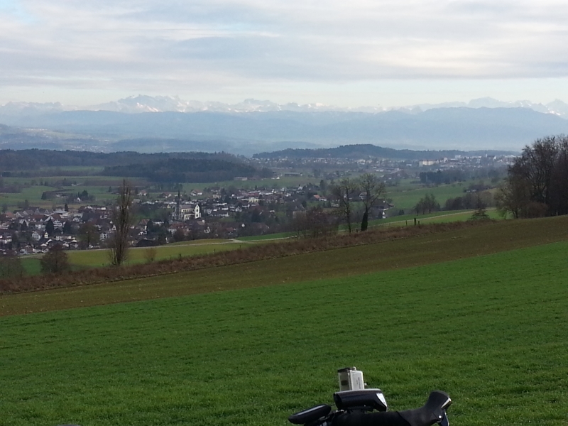 Wegen der Spitzkehre im Aufstieg hat man später auch auf die andere Seite, im Reusstal aufwärts die längste Zeit eine wunderbare Aussicht auf den Alpenkamm. Auch dazu, das schon fast obligate Foto während meinen Fahrten diesen Winter.