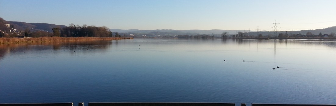 Der Nebel löste sich ja bald auf und so kamen wir zu einer frühlingshaften Runde um einen spiegelglatt daliegenden Klingnauer Stausee. Keine Wolke am Himmel, kaum ein kräuseln auf dem Wasser. Selbst Enten und Schwäne schienen sich kaum zu bewegen. Nur auf dem Dammweg, da wurde flaniert, gejogged, inlineskated, gewalked und spaziert.