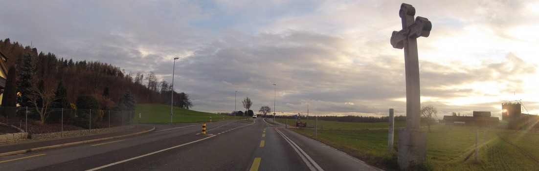 Nach dem ich die Reuss überquert hatte ging es wieder hinauf, über Bünzen und Boniswil ins Bünztal. Ich verpasste den Radweg parallel zur grossen Hauptstrasse und kurbelte deshalb nicht ganz freiwillig die steile Rampe nach Büttikon hinauf. Während der Abfahrt, wieder hinunter ins Bünztal gelang der Kamera am Lenker aber doch noch eine ganz akzeptable Aufnahme.