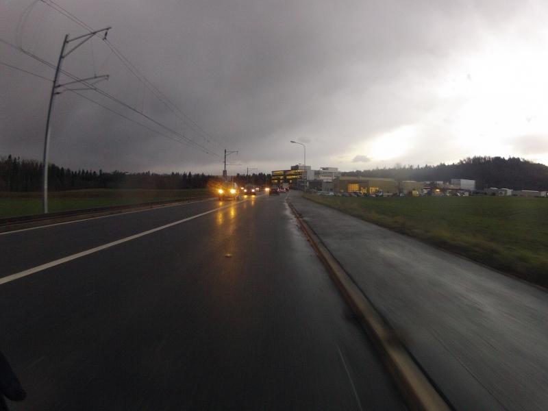 In Fischbach-Göslikon verliess ich meinen Windschatten wieder und fuhr über den Hügel nach Wohlen hinunter. Der Blick hinüber nach Villmergen und das Seetal verhiess nichts Gutes. Eine schwarze Wolke entlud sich dort gerade.