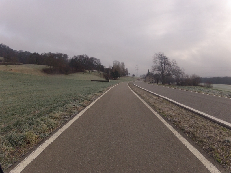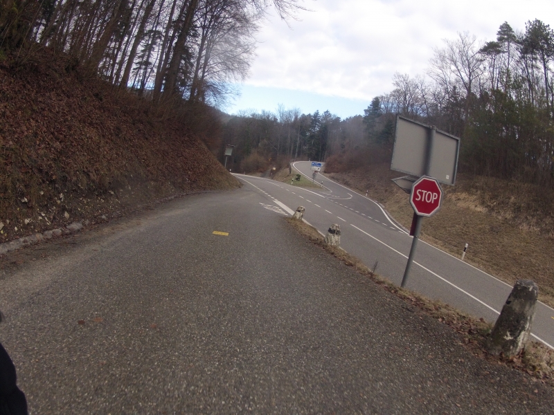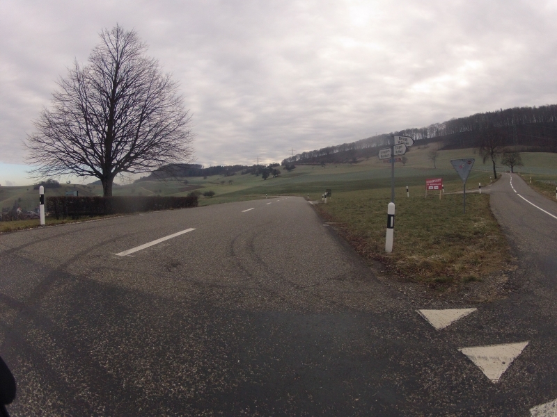 Die anschliessende Abfahrt hinunter ins Fricktal, war trotz der Sonne richtig kalt. So bog ich denn bei der nächsten Möglichkeit, bereits in Bözen wieder rechts weg von der Hauptstrasse, hinauf und über die Doppelbuckel der Ampferenhöhe. Noch hatte ich Sonne. Doch die Nebelschwaden stiegen rundherum auf.