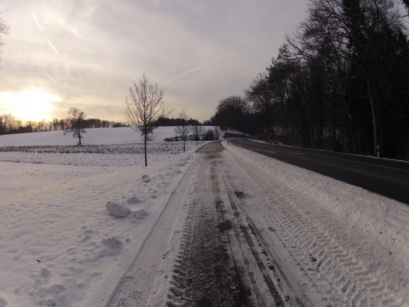Erst nach der Fahrt, bei der Durchsicht der Bilder, die meine Kamera am Lenker alle 10 Sekunden geschossen hatte, wurde mir bewusst, durch welch wunderbare, winterliche Stimmungsbilder ich da heute Nachmittag gerollt bin.