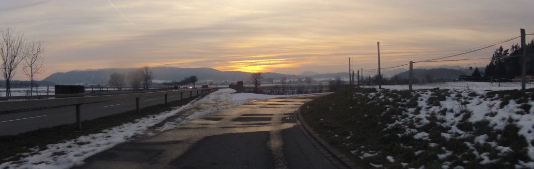 Während ich so auf den Strassen nach einer günstigen Stelle für ein Foto herum kurvte begannen Sonne und Wolken wieder einmal einen wunderbaren Sonnenuntergang zu bilden.