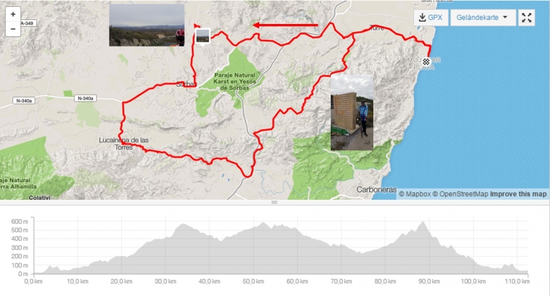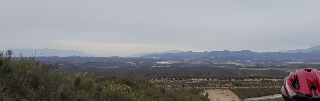 Die heutige Fahrt ging wiederum in das Landesinnere. Diesmal wählten wir eher die Höhen. So kamen wir oberhalb Cariatiz zu einem schönen Blick über die nächsten Talschaften. Ganz im Hintergrund, etwa in der Bildmitte, sind sogar Schneefelder auf den letzten Ausläufern der Sierra Nevada zu erkennen.