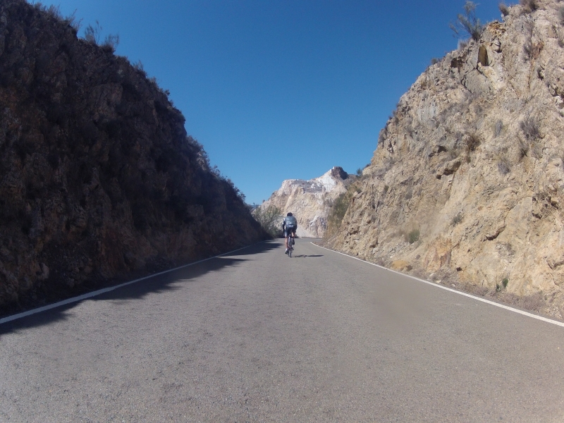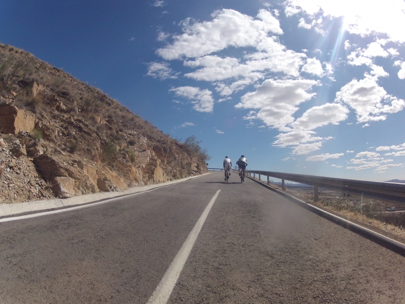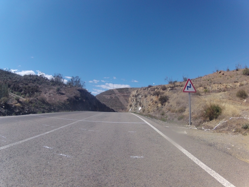 Nach dem Mittagessen ging es noch ein Stück nordwärts. Weiter auf schönen, meist neuen und gut ausgebauten Strassen hinunter bis fast nach Albox. Dies war denn auch der nördlichste Punkt unserer heutigen Fahrt. Die ersten paar Kilometer, zurück ins Gebirge half uns der Rückenwind. Die vielen Kreisel kurz vor Arboleas sind für mich als Guide eine besondere Herausforderung. Auf dem GPS sind sie noch nicht verzeichnet, bei einigen muss fast die ganze Runde gefahren werden, andere schliessen direkt an den vorhergehenden Kreisel an.