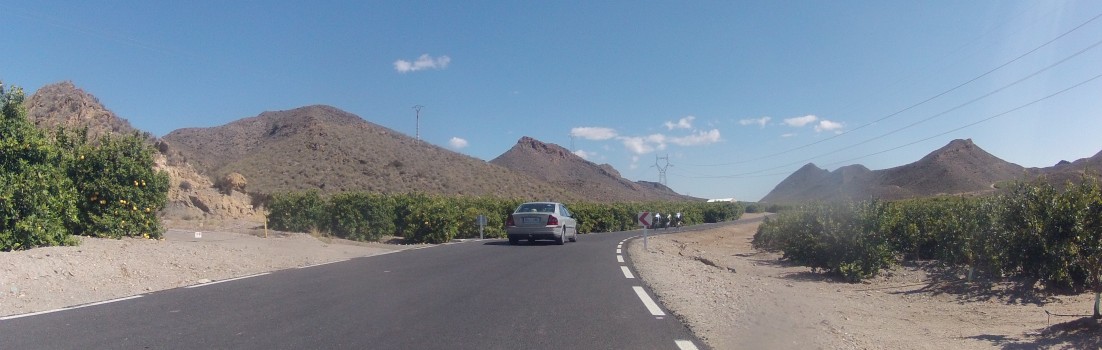 Wir fuhren eine Weile dem Meer entlang nach Norden, bogen dann über das Hinterland wieder durch die Plantagen mit den vielen Orangen-, Zitronen- und Grapefruit-Bäumen über einen Hügel hinunter nach Aguilas an das Meer.