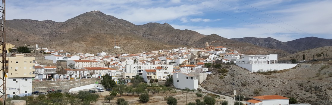 Die Strasse nach Alcudia de Monteagud war für mich neu. Wie fast alle Strassen hier in der Gegend ist auch sie wunderbar geteert. Eine neue Strasse von unten bis weit hinauf. Oftmals um viele Kurven herum, um Felsvorsprünge herum. Vorbei an unzähligen Olivenbäumen. Manchmal hat man eine sehr gute Übersicht über das Tal und weiter draussen, die grosse Ebene nach Sorbas hinüber. Es scheint ein sehr guter Boden für Mandeln und Oliven zu sein.