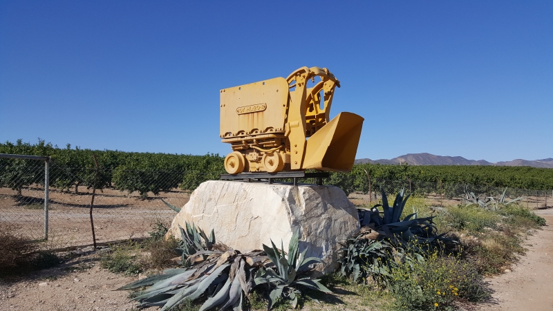 Zu Beginn fuhr ich unsere üblichen Strecken. Weg vom Meer, entlang der Autobahn und bald einmal durch die Orangenplantage hinauf, auf den ersten Hügel. Am Eingang der Orangenplantage steht dieser Bagger, wohl als Andenken oder Erinnerung an den Bergbau.