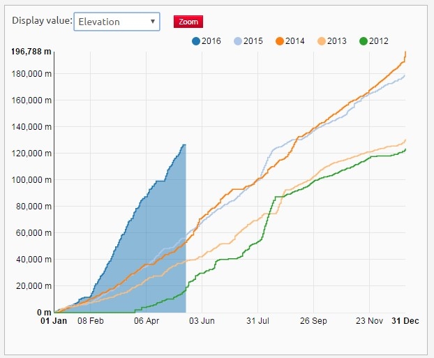 Noch viel beeindruckender ist die Entwicklung der Höhenmeter. Im gleichen Zeitraum habe ich 114’901 Höhenmeter erkurbelt.