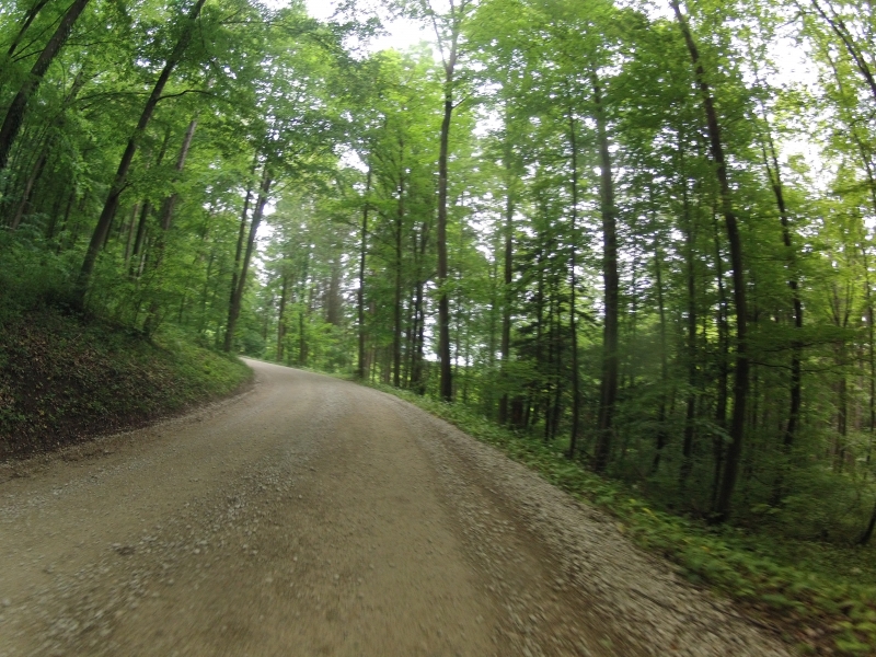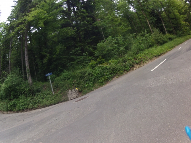 Der zweite Aufstieg zum Bözberg ist ein kaum benutzter Weg. Steil, schlechter Strassenbelag, teilweise ungeteert führt er meist durch den Wald. Glücklicherweise wurde der Weg offensichtlich in den letzten Tagen wohl etwas ausgeebnet, so dass man auch mit dem Rennrad ohne allzugrosse Probleme wegen des lockeren Untergrundes hochkam.