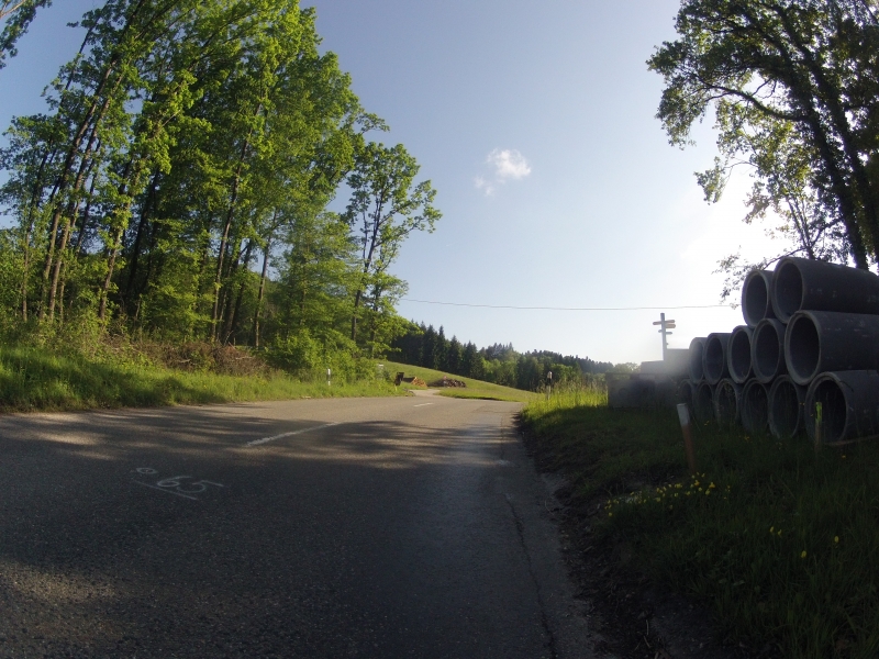 Von der Ampferenhöhe, also ab dem zweiten Buckel, führt dann die Strasse fast schnurgerade nach Elfingen hinunter und später ins Fricktal und damit auch an die Bözbergstrasse. Da musste ich darüber, wollte ich zurück ins Aaretal und damit auf “meine” Seite des Bözberges gelangen.