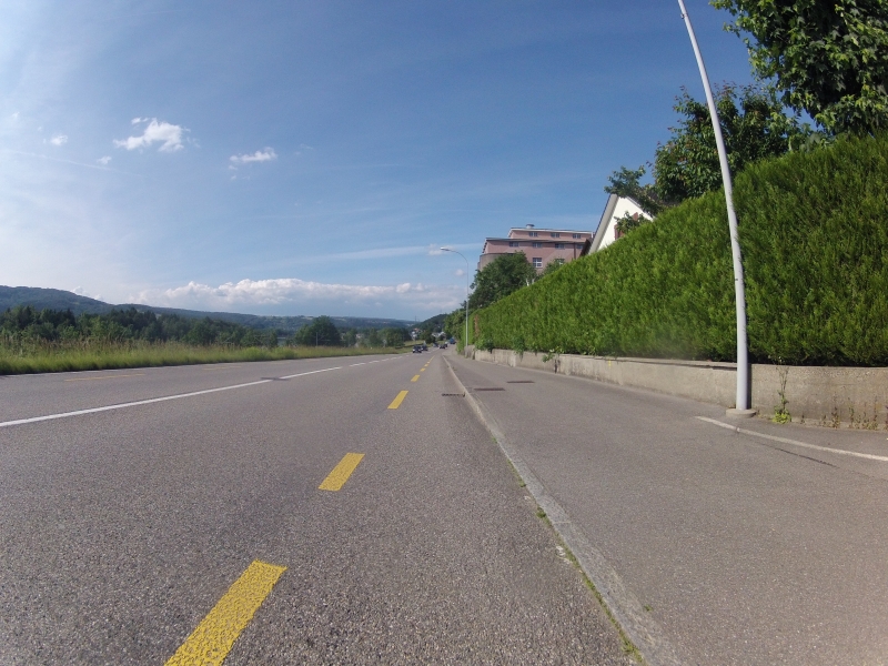 Ein paar Anstiege sind zu nehmen, bevor man dann in den Genuss einer recht langen Abfahrt nach Lenzburg und Wildegg hinunter wieder ins Aaretal gelangt. Deutlich sind jetzt am Horizont die Wolken wohl der nächsten, bereits angekündigten Wetterfront zu erkennen.