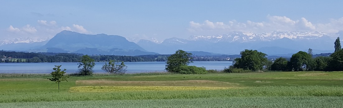 Ich fuhr meine Standardstrecke durch das Bünztal und über einen Hügel nach Ammerswil. Nach einem zweiten kleinen Hügel gelangt man nach Seengen und sieht dann schon bald auf den Hallwilersee hinunter. Es dauerte danach nicht mehr lange und ich kam schon bald in den Genuss eines wunderbaren Blickes auf den Alpenkamm vor mir.