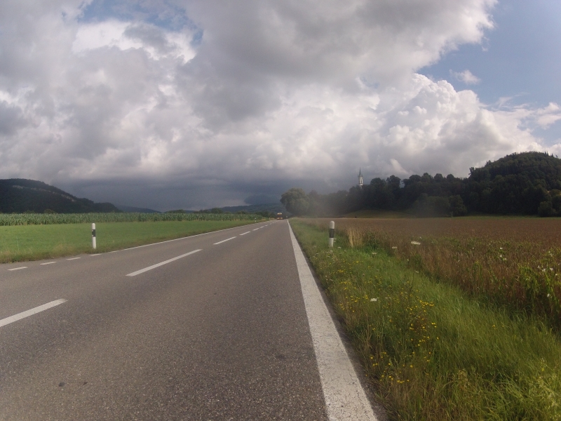 Einfach wieder mal raus, in der Regenpause aufs Rennrad. Die letzte (?) Regenwolke hat sich gerade über die Habsburg verschoben, am Bözberg ist es noch klar. Es dürfte für eine flache Runde im Aaretal reichen.