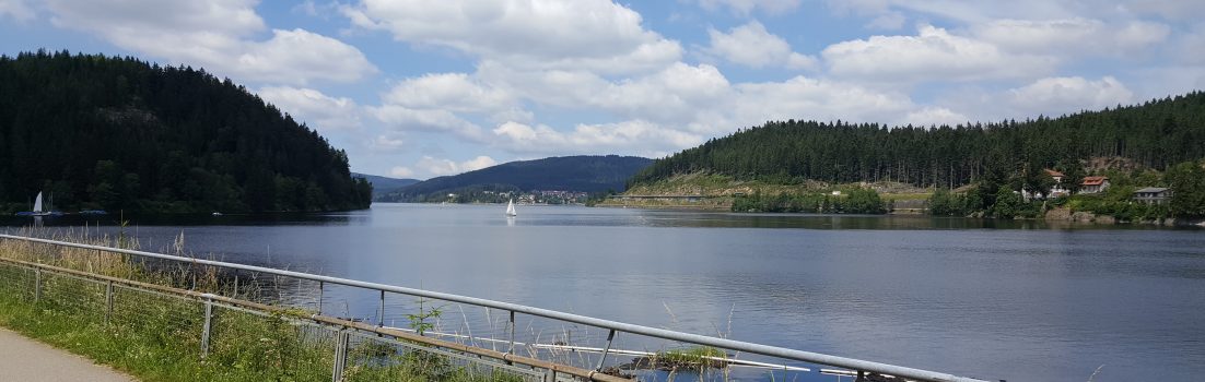 Danach ging es zügig ein paar Spitzkehren hinunter nach Aha. Ich fuhr entlang des Schluchsees hinunter bis Seebrugg, wollte dort im “Gleis 6” wieder einmal ein richtiges Stück Schwarzwäldertorte verspeisen. Doch da war nichts mehr. Etwas von Pizzeria stand da, aber die schien auch schon nicht mehr aktiv zu sein. Über dem leeren Fenster hing noch das Schild “Süssigkeiten zum Mitnehmen”.
