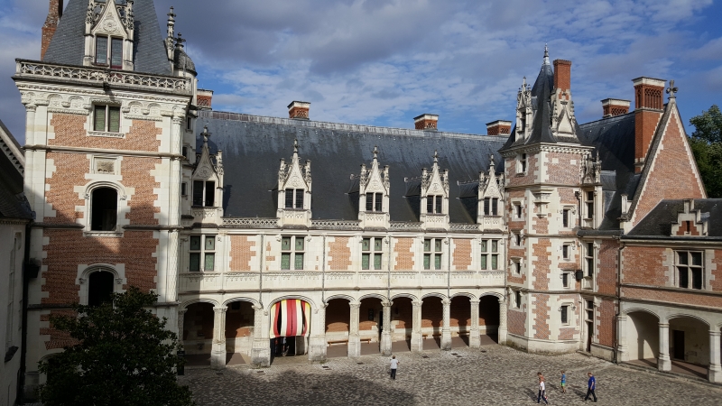 Zum Schluss noch der Besuch im Schloss von Blois, sozusagen vor unserer Haustüre, in diesen Ferientagen. Vielleicht waren wir von den anderen Besuchen und Erlebnissen schon etwas überfüllt. Ich habe davon kaum ein Foto gemacht. Obwohl es auch sehr schön restauriert wurde. Vergoldete Arbeitszimmer, Merkmale der Baustile aus Gothik, der Renaissance, der Spätghotik und des Klassizismus. Verschiedene Herrscher haben hier denn auch vom 13. bis ins 17. Jahrhundert immer wieder gebaut oder auch mal abgerissen.