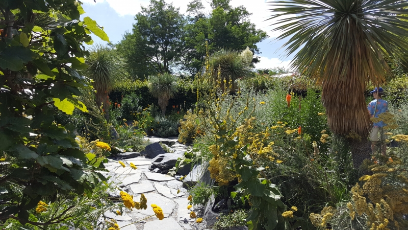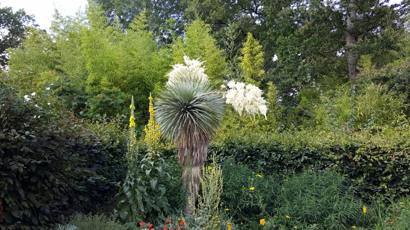 Einige der Gartenbauer hatten wohl so etwas wie “Untergangsstimmung”. Sie sahen, dass sich die Natur die Landschaft zurückerobert. Sei es, dass Pflanzen aus Häusern heraus wuchsen, sei es mit Wasserspielen und übermässigem Pflanzenwuchs. Einer versuchte diese Stimmung auch noch mit erotischen Dreingaben zu untermalen. Am besten gefallen hat mir aber diejenige Darstellung, in der die Yukas, als Pflanze die die Wärme wohl am Besten überstehen kann, die mit Schieferplatten überdeckte Erde wieder aufbricht, und so den Weg für die anderen Pflanzen frei macht.