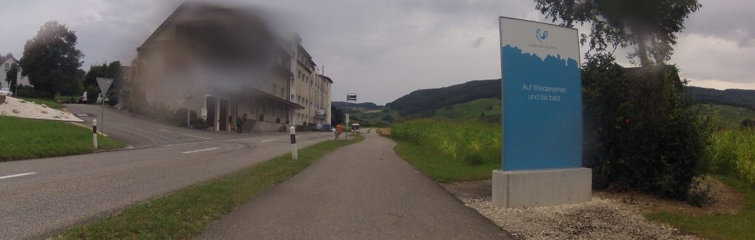 Liess mich vom Wind wieder zurückstossen, erklomm die Höhe nach Riniken hinauf, umrundete das Villigerfeld. Mehr als Nieselregen gab es bisher nicht. Das Aaretal hinunter bis zum Rhein schien ebenfalls von Regen frei zu sein. Also kurbelte ich noch nach Böttstein hinauf, sauste wieder ins Aaretal nach Döttingen hinunter.