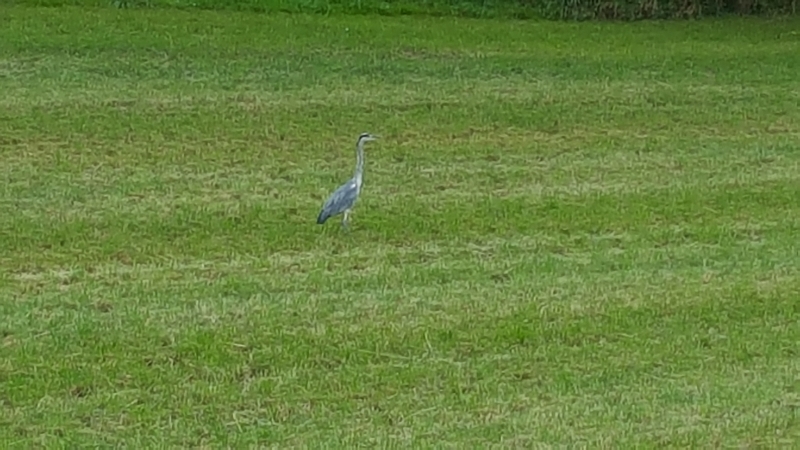 Nach dem Bözberg geht es ins Fricktal hinunter bis nach Frick. Ich nehme die Abzweigung in Richtung Sissach. Die Absicht ist, über die Saalhöhe wieder zurück ins Aaretal zu fahren. Unterwegs habe ich endlich einmal Glück und erwische einen Fischreiher vor die Kamera. Behutsam fahre ich vielleicht bis auf 20 Meter heran. Er macht dann doch noch ein paar Schritte rückwärts, aber mit vollem Zoom am Handy ist er wenigstens noch zu erkennen.