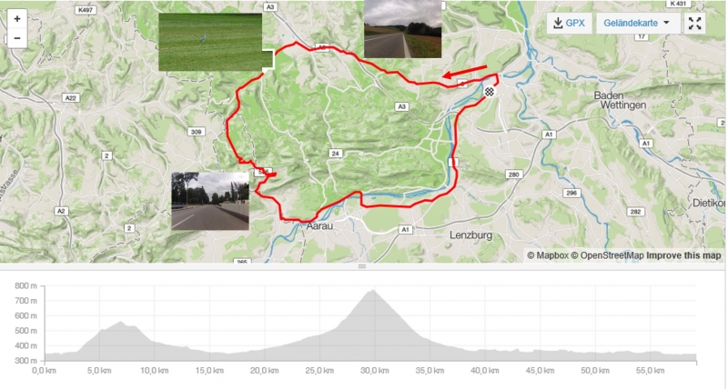 Für die letzten Rundfahrten habe ich jeweils Routen mehr oder weniger entlang der grossen Flüsse gewählt. Diese Streckenprofile sind denn meist auch eher flacher. Möchte ich in die nördliche Richtung fahren, so muss ich bald einmal über einen der Hausberge und auf dem Rückweg meist gerade noch einmal über einen anderen Hausberg fahren, es sei denn, ich fahre entlang dem Rhein und später der Aare nach Hause.