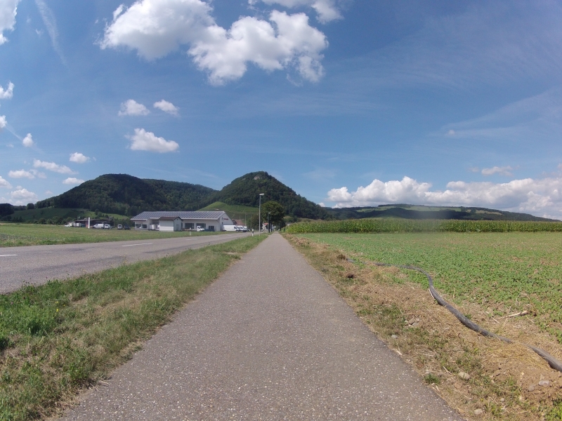 Für die heutige Rundfahrt habe ich mir eine etwas längere Aufwärmstrecke gegönnt, bevor ich mich an die Höhenmeter-Kurblerei machte. So fuhr ich erst einmal ein Stück der Aare entlang hinunter, nahm dann doch die kurze Steigung zum Villigerfeld hinauf, umrundete dieses und gelangte so quasi von hinten auf den Bözberg hinauf.
