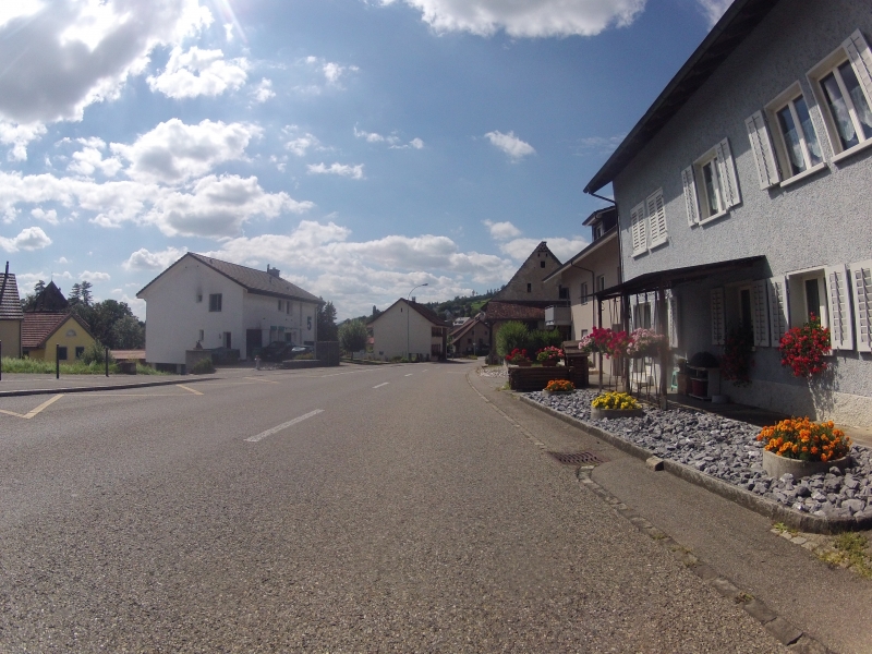 Nach diesen steilen Höhenmetern geht es einen Moment etwas flacher, später durch eine kleine Mulde, doch dann fällt die Strasse in Richtung Norden wieder in die Tiefe. Eine heftige Gegensteigung erwartet mich kurz vor Anwil. Doch dann kann ich zügig und locker nach Frick hinunter pedalieren. In der Zwischenzeit habe ich nach Kienberg auch wieder vom Kanton Solothurn in den Kanton Aargau gewechselt.